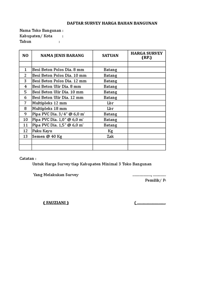 Form Survei Harga from imgv2-2-f.scribdassets.com Untuk mewujudkan keinginan tersebut, ada beberapa cara yang bisa ditempuh. Toko bangunan lancar jaya raya berdiri sejak 2019 yang lalu, di pedesaan desa tegaldlimo banyuwangi 15km sebelum alas purwo banyuwangi. Pembayaran mudah, pengiriman cepat & bisa cicil 0%. Untuk peralatan mandi sendiri mencakup sabun. Toko besi dan bahan bangunan aa semarang. Hampir semua orang bisa dipastikan ingin memiliki hunian pribadi sebagai tempat tinggalnya bersama keluarga tercinta. Toko bahan bangunan malang kota online 24 jam. Mulai tahun 80 an toko yang dulunya di sebut toko besi / toko pandai besi sekarang menjadi toko material bangunan.